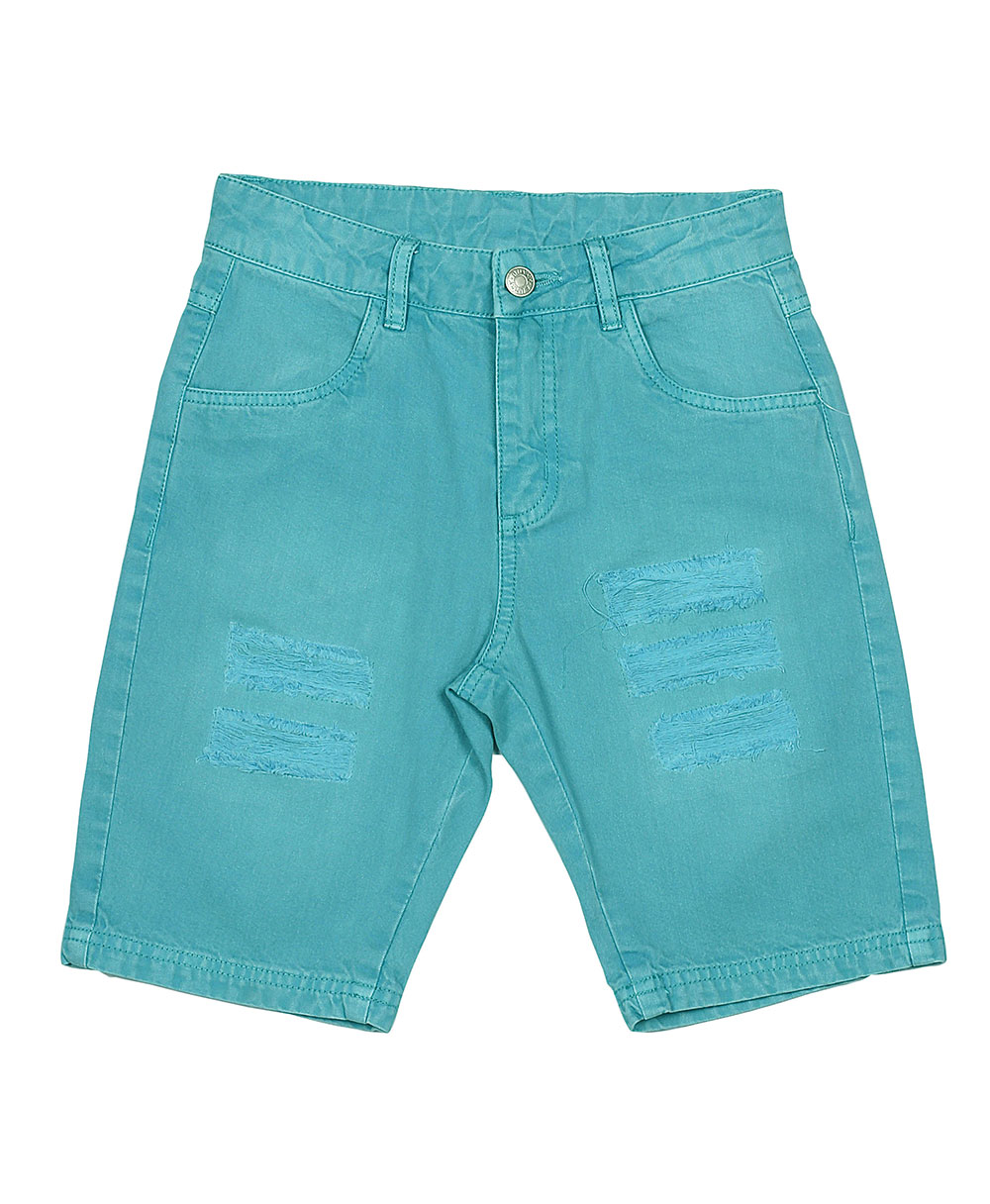 Βερμούδα τυρκουάζ υφασμάτινη με σκισίματα μπροστά.