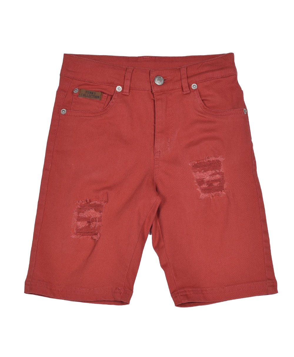 Βερμούδα υφασμάτινη σε χρώμα κόκκινο απαλό με σκισίματα μπροστά.