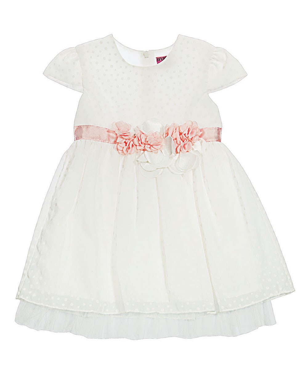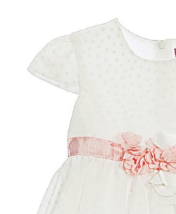 Φόρεμα λευκό κοντομάνικο με σομόν ζωνάκι στην μέση για τις όμορφες δεσποινίδες.