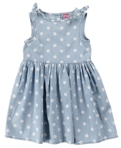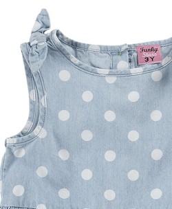 Φόρεμα αμάνικο σε σιέλ τύπου τζιν χρώμα με λευκά πουά.