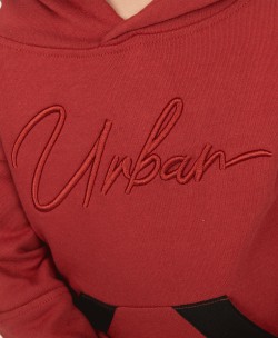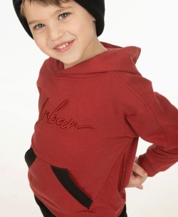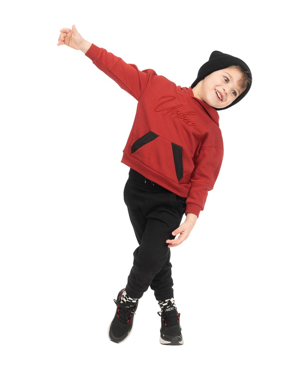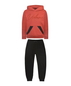 Φόρμα από αχνούδιαστο φούτερ. Η μπλούζα έχει κουκούλα, τύπωμα και καγκουρό τσέπη. Το παντελόνι έχει κορδόνι και τσέπες.