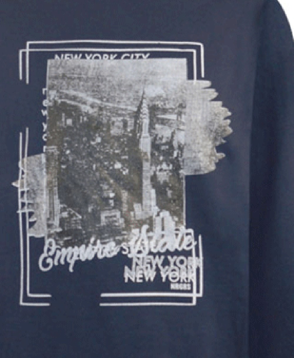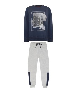 Φούτερ φόρμα με τύπωμα Empire State. Η μπλούζα έχει ριπ μανίκια και το παντελόνι έχει τσέπες, κορδόνι, ριπ και διακοσμητική λωρίδα σε άλλο χρώμα στο κάτω μέρος.
