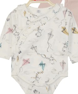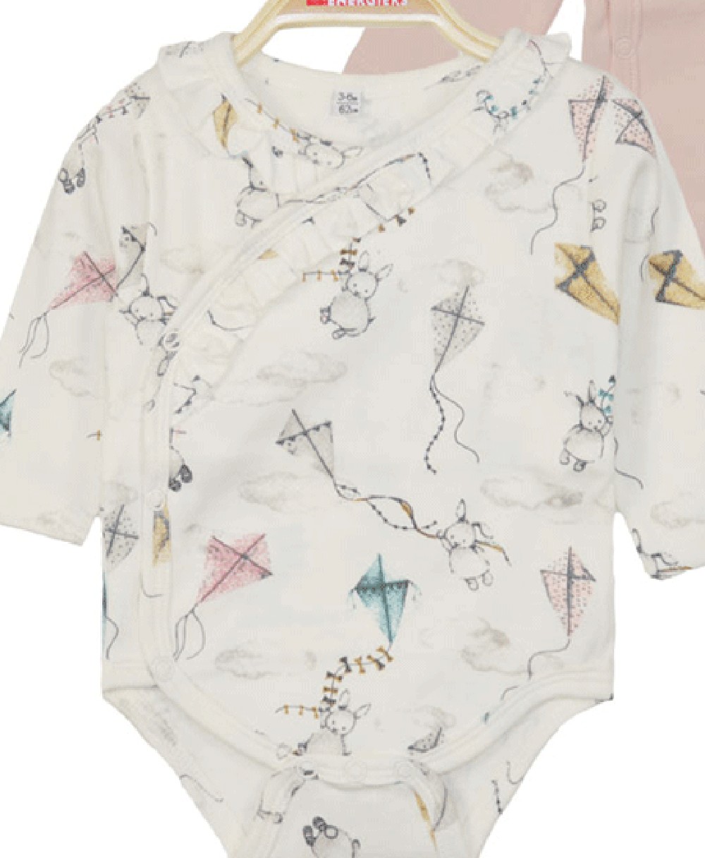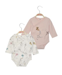 Βαμβακερό σετ 2 φορμάκια. Το ένα είναι εμπριμέ με τύπωμα χαρταετός και το άλλο μονόχρωμο ροζ με διακριτικό τύπωμα χαρταετός. Και τα 2 έχουν κουμπάκια στο κάτω μέρος.