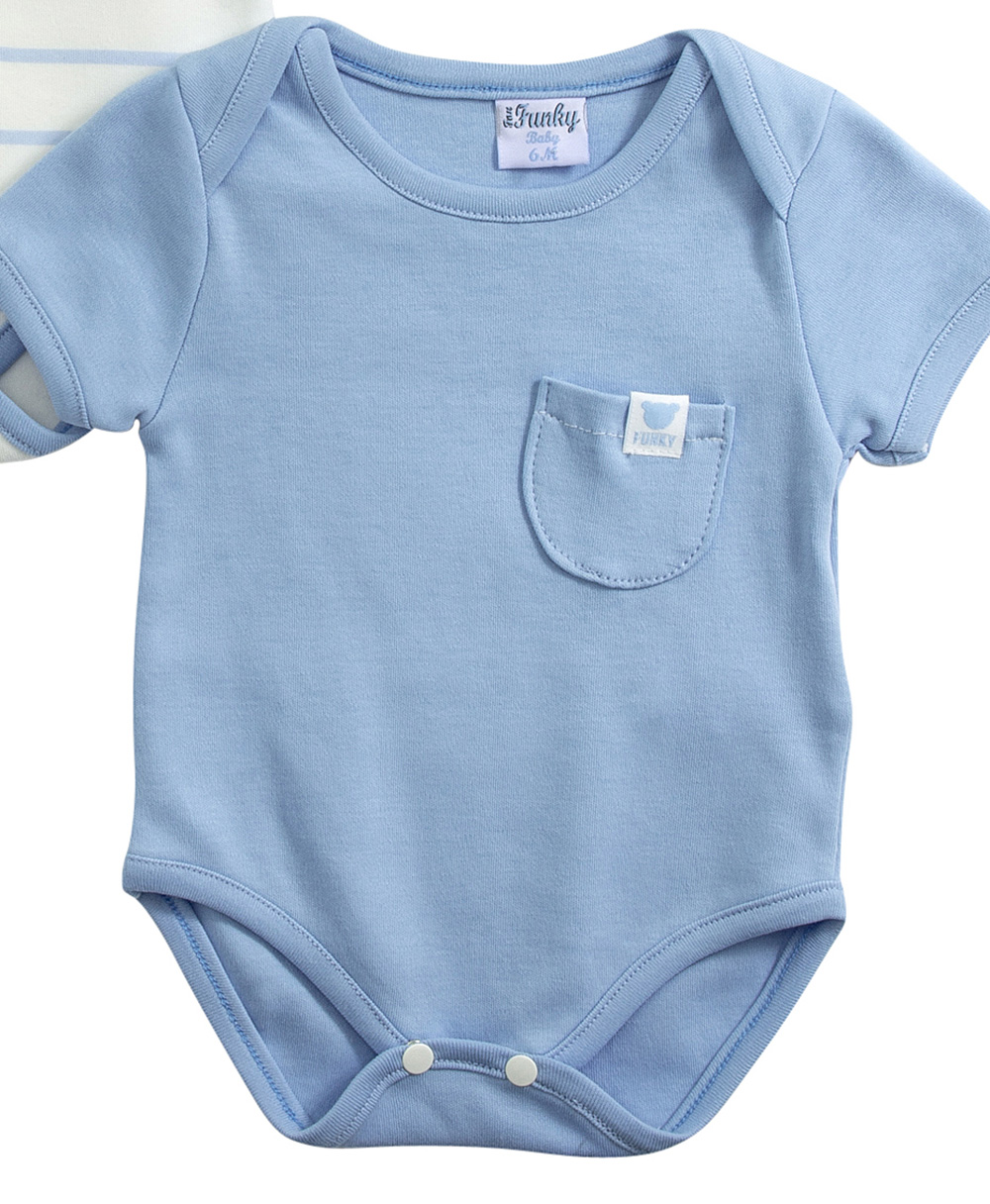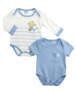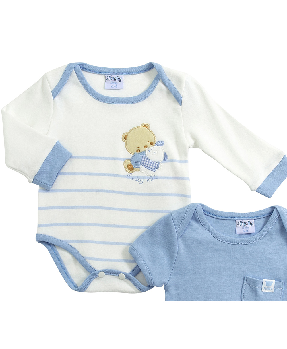 Σετ εσώρουχα 2 τεμαχίων για αγόρι. Κοντομάνικο σε σιέλ χρώμα, μακρυμάνικο λευκό με ρίγες και σχέδιο μπροστά.