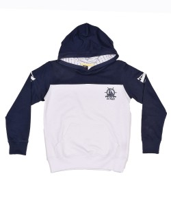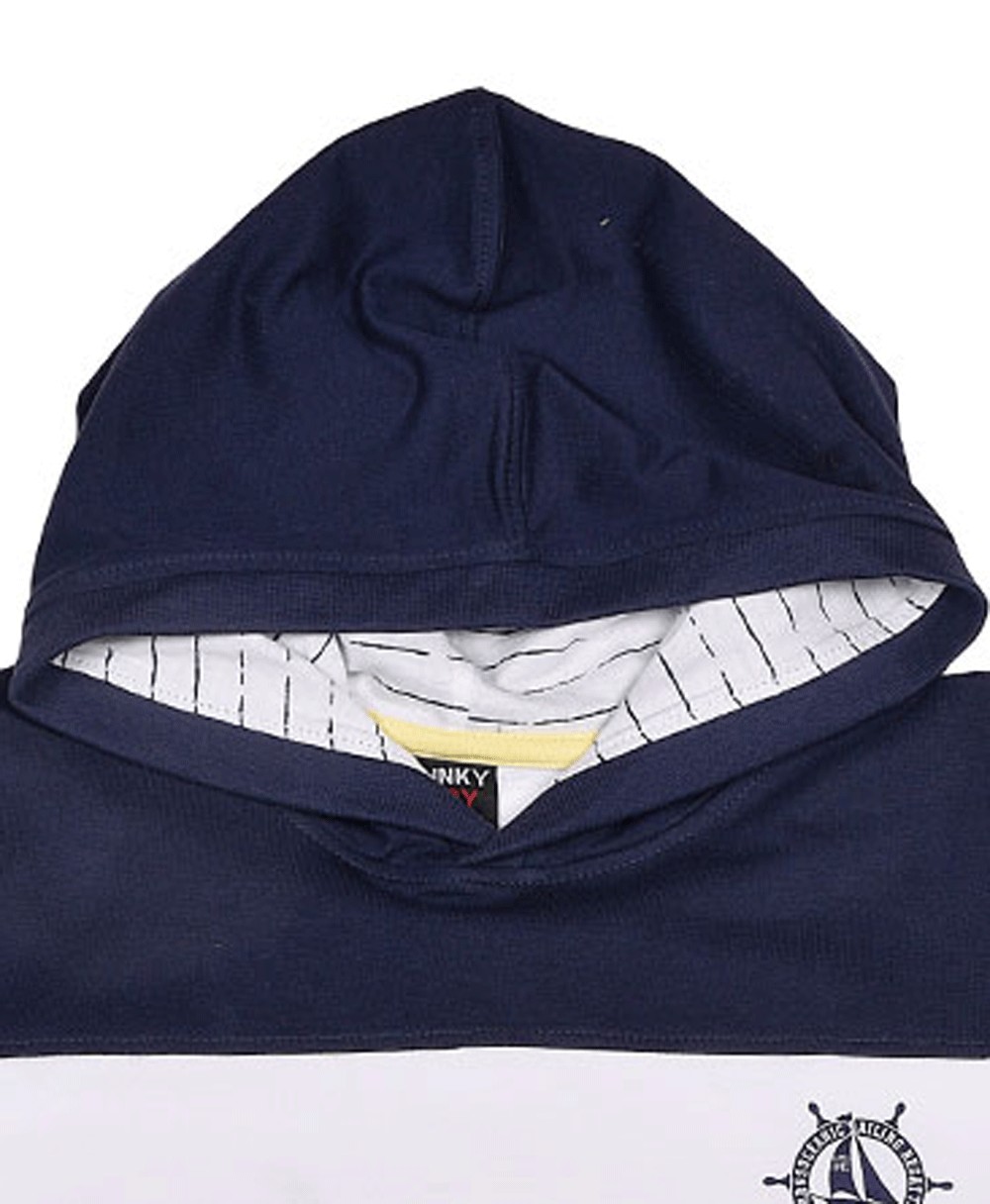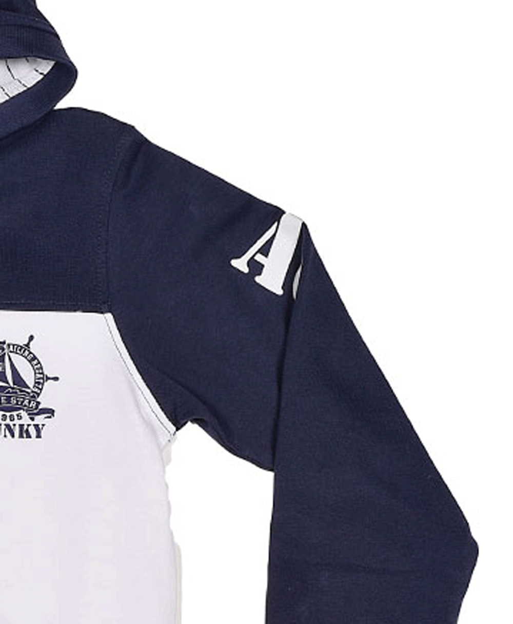 Μπλούζα φούτερ για αγόρι σε μπλε και λευκό χρώμα με κουκούλα.