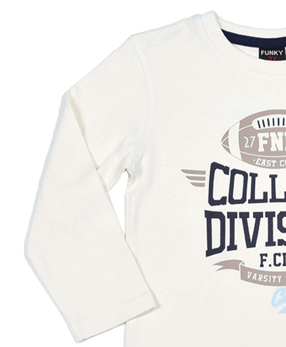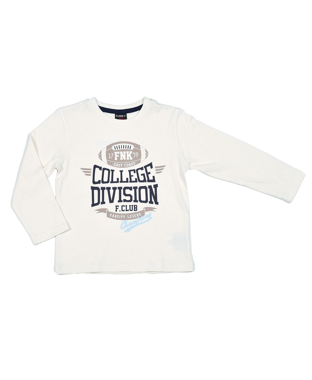 Μπλούζα μακρυμάνικη για αγόρι λευκή με γράμματα μπροστά. Ιδανική για φθινόπωρο, χειμώνα και άνοιξη.