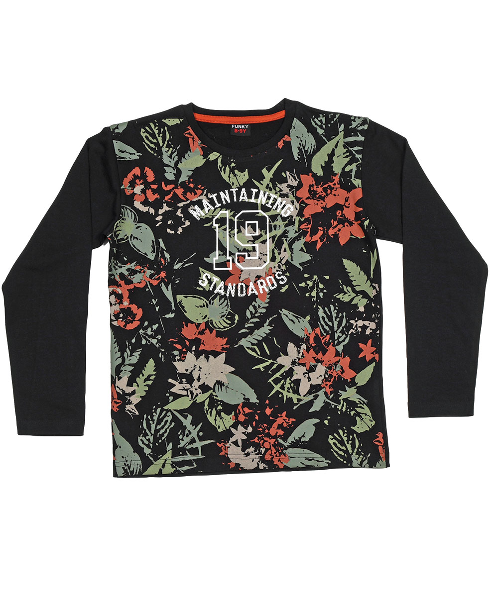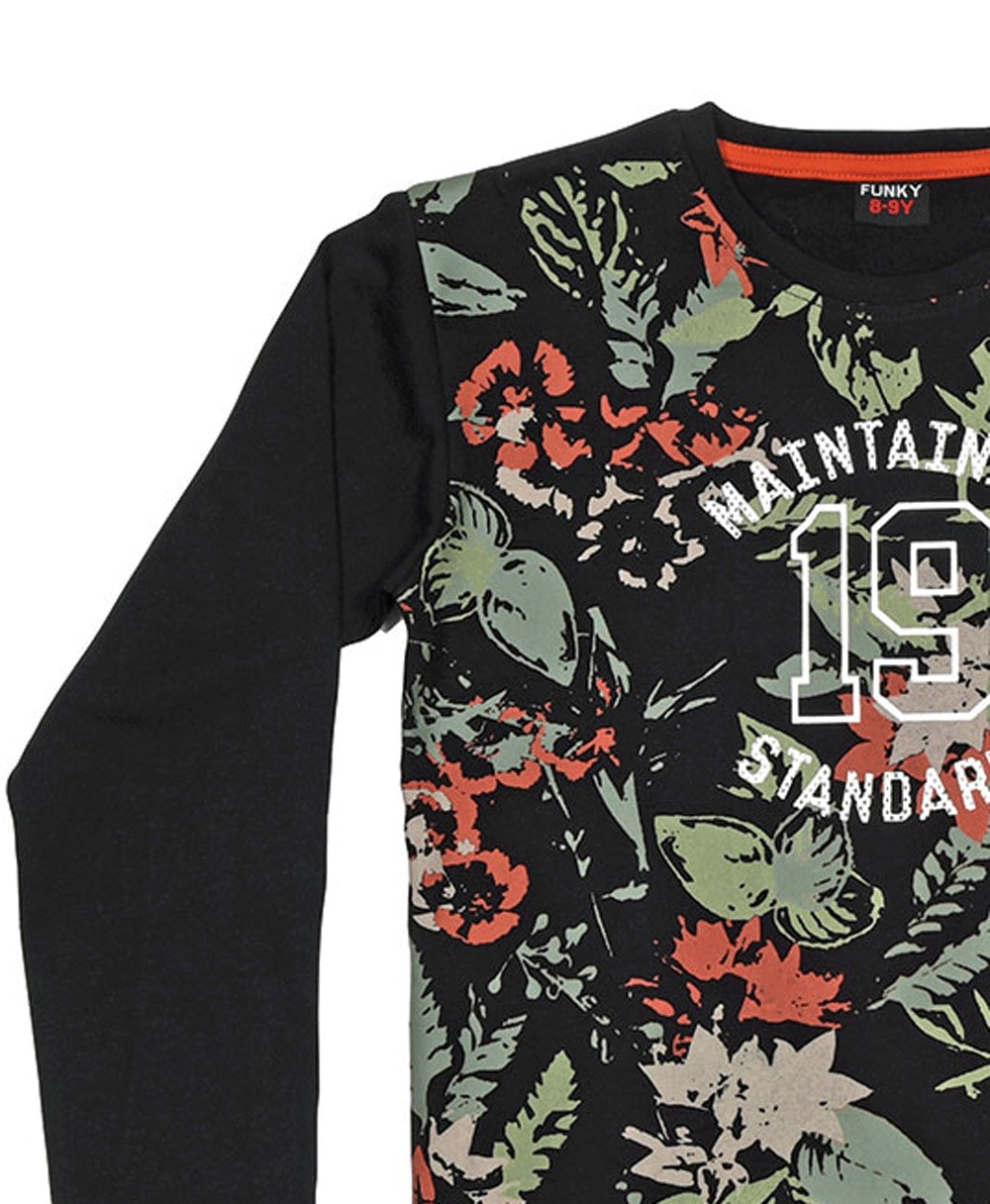 Μπλούζα μακρυμάνικη για αγόρι μαύρη με σχέδια μπροστά. Ιδανική για φθινόπωρο, χειμώνα και άνοιξη.