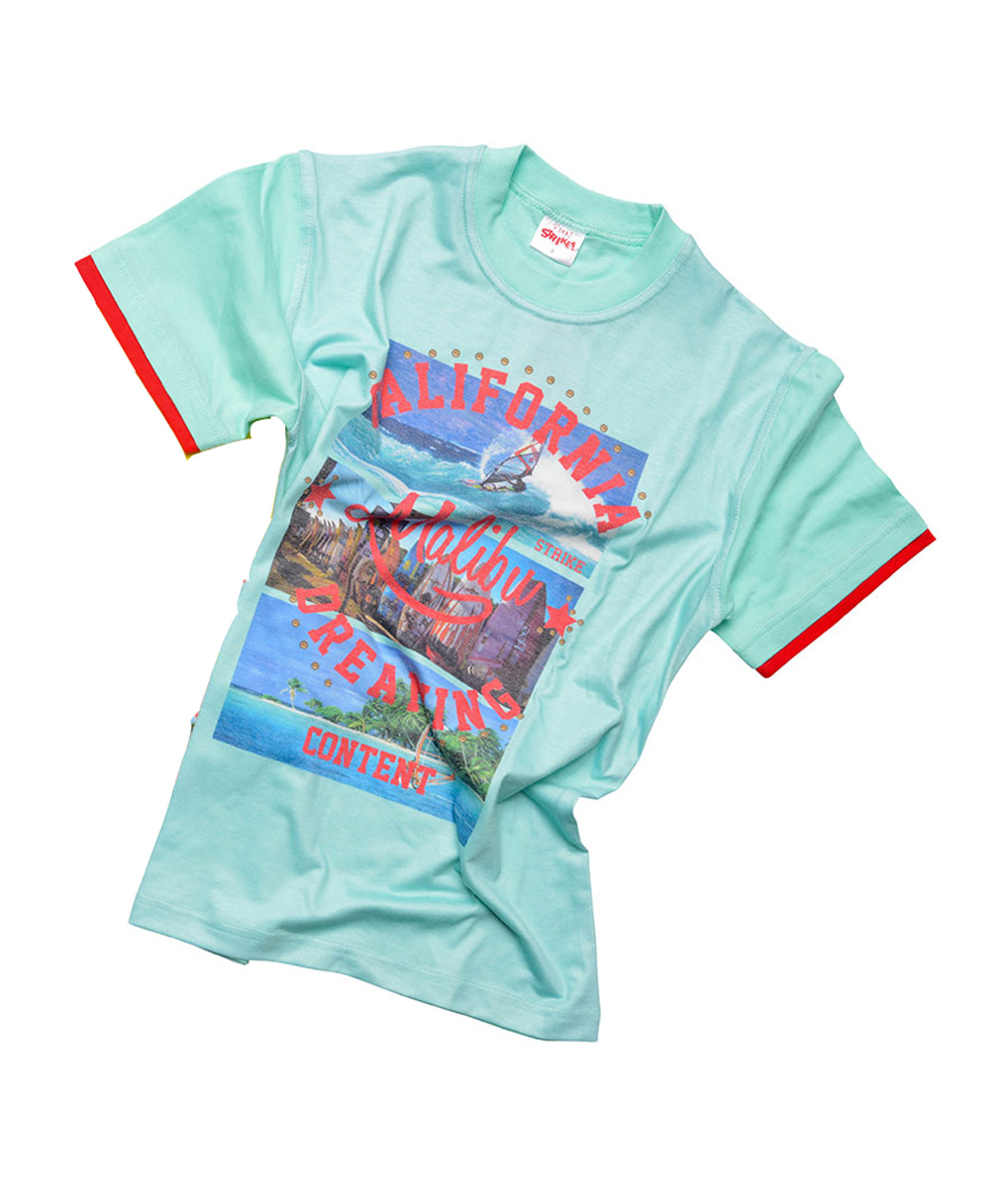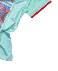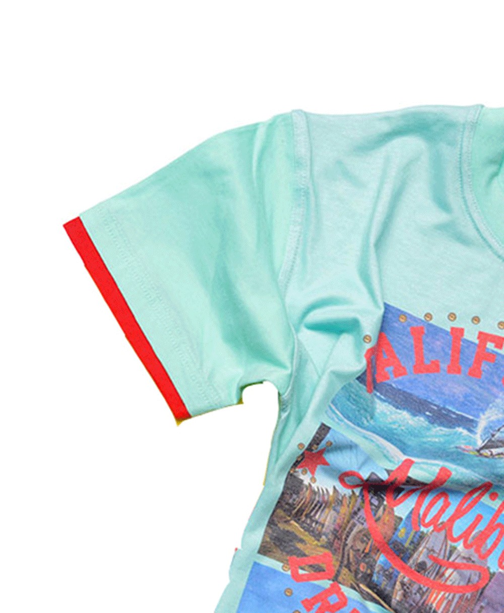 Μπλούζα τυρκουάζ κοντομάνικη με σχέδιο μπροστά.