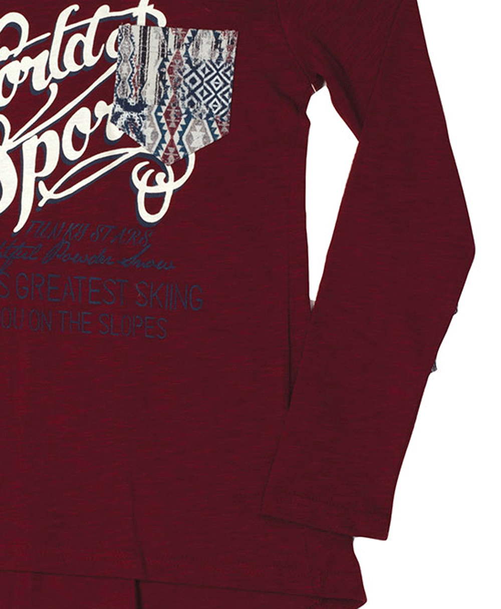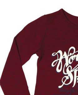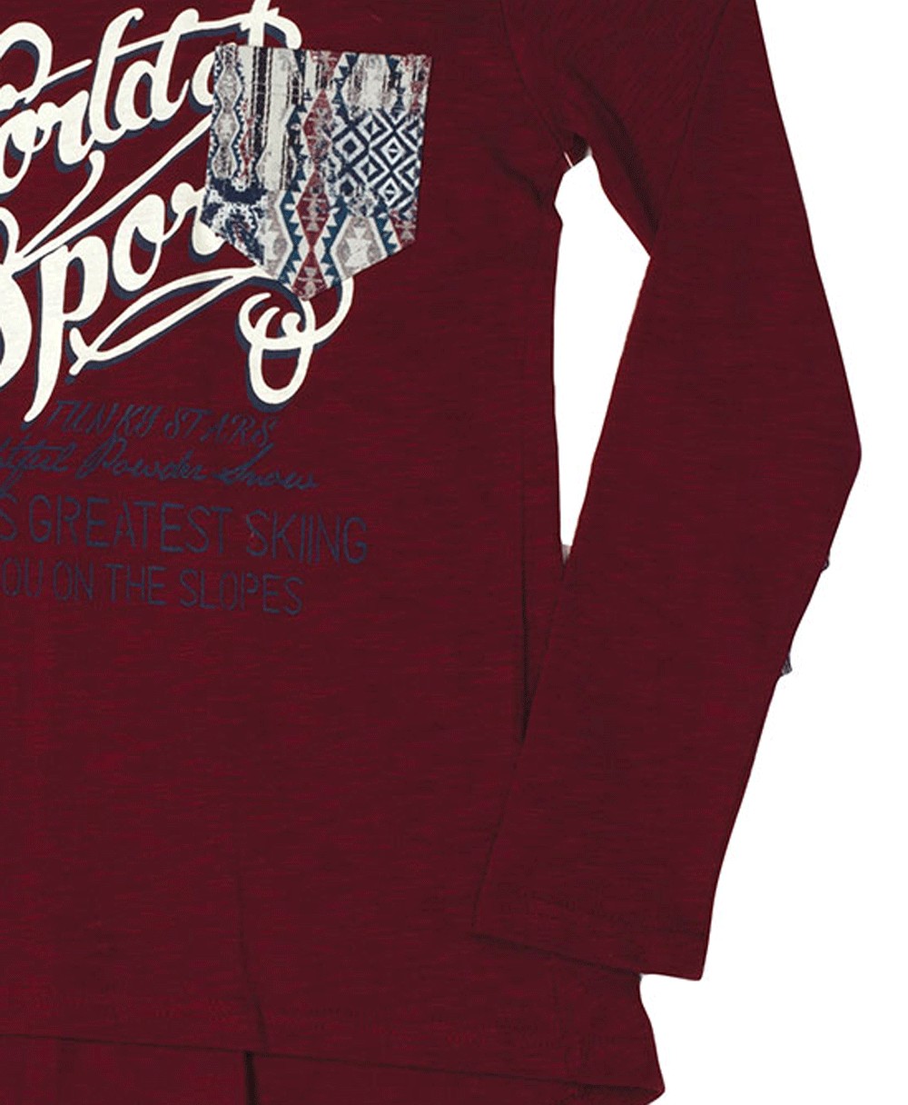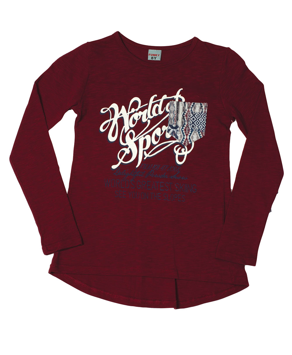Μπλούζα για κορίτσι μακρυμάνικη μπορντώ με λευκά γράμματα (Σημείωση: η τσέπη στη φωτογραφία δεν υπάρχει στο ρούχο). Ιδανική για φθινόπωρο, χειμώνα και άνοιξη.