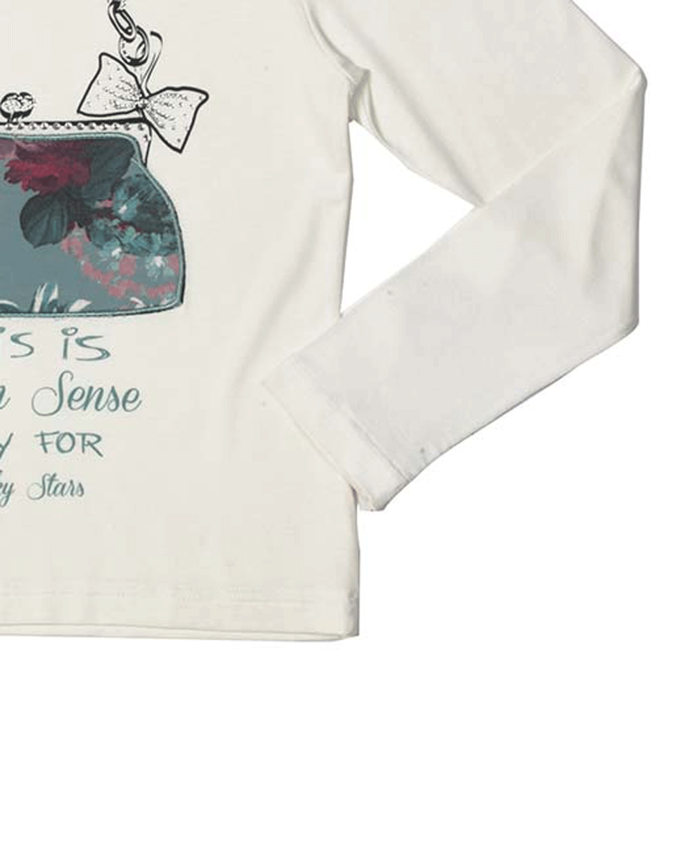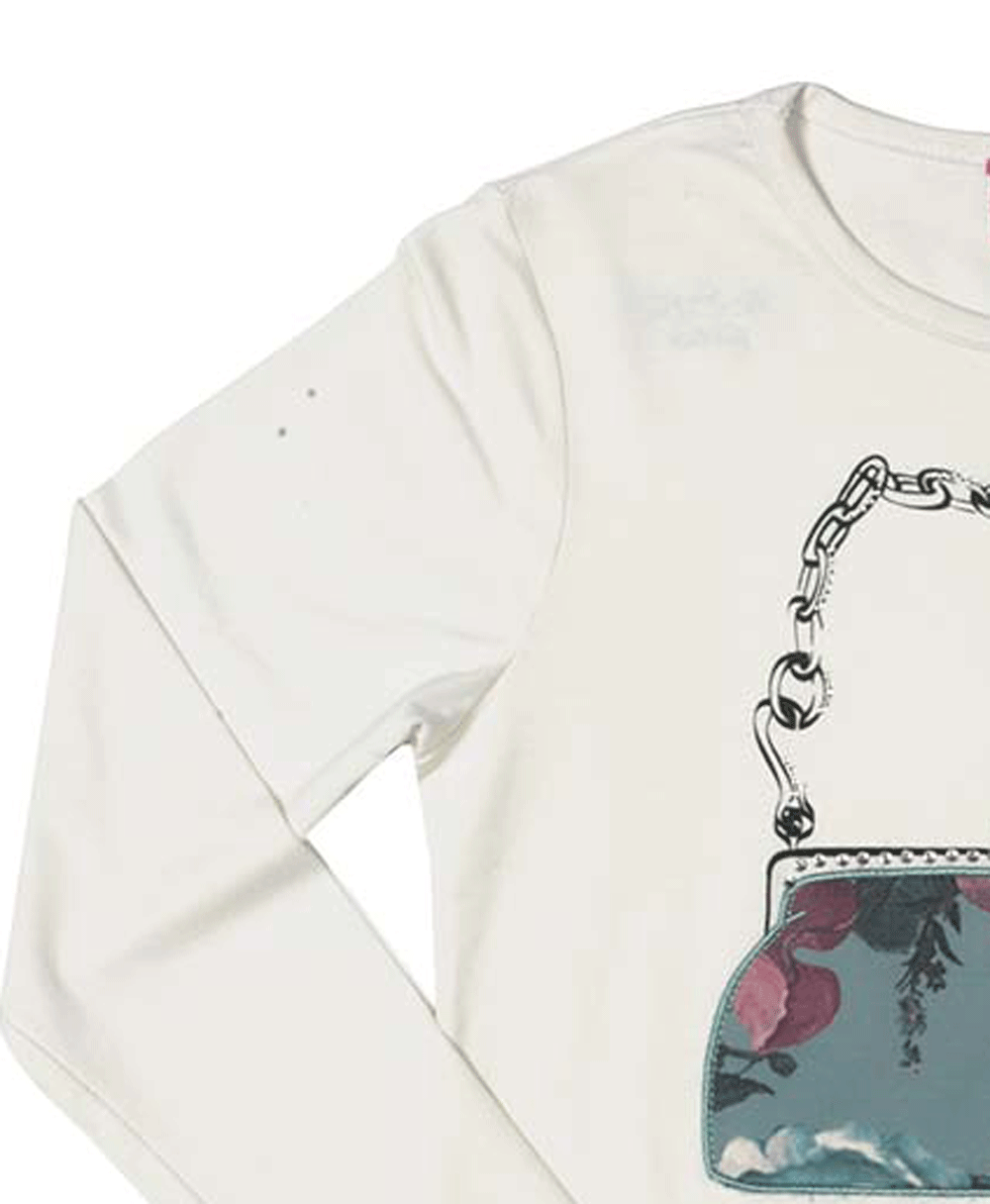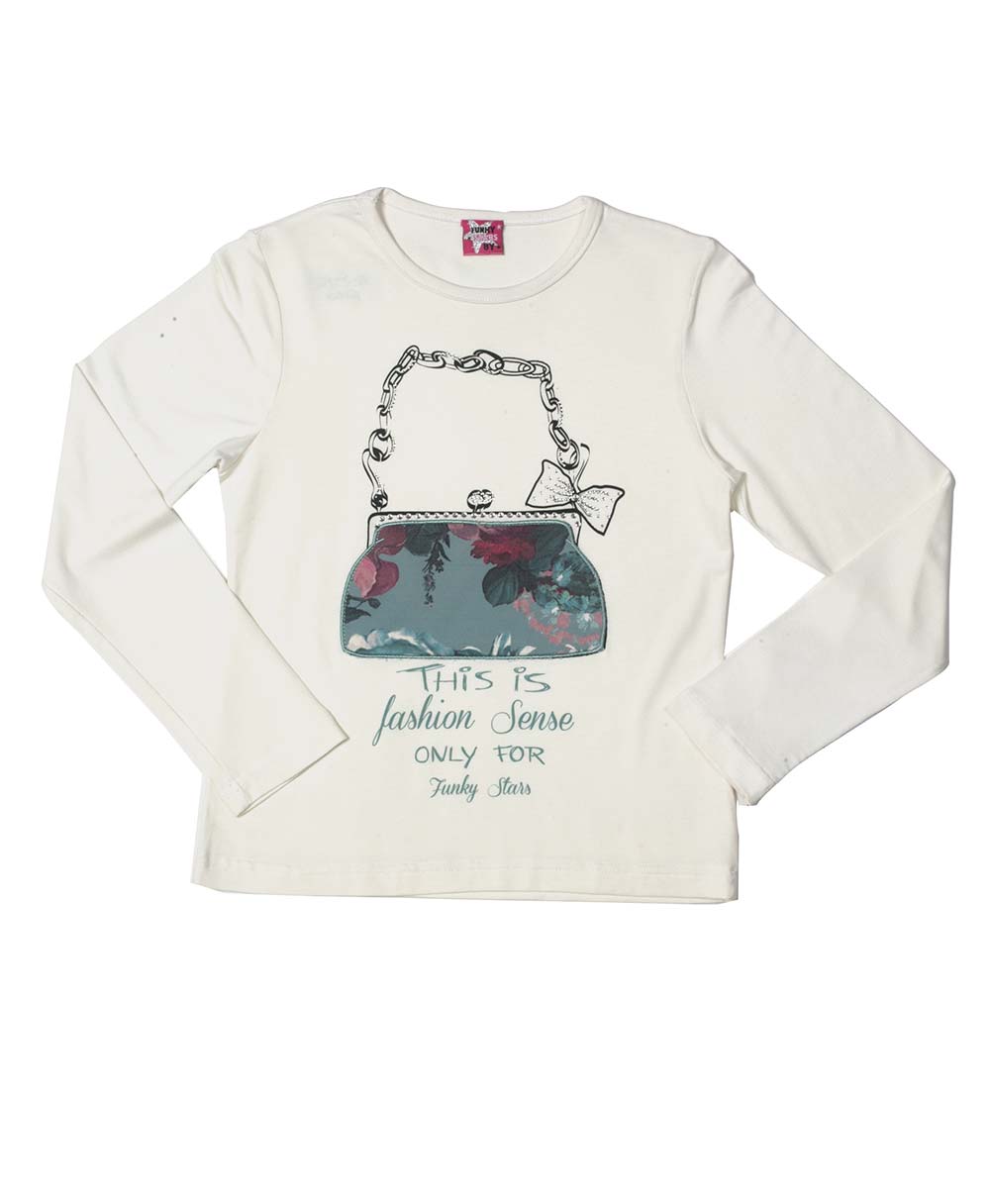 Μπλούζα για κορίτσι με σχέδιο τσάντα στο μπροστινό μέρος. Ιδανική για φθινόπωρο, χειμώνα και άνοιξη.