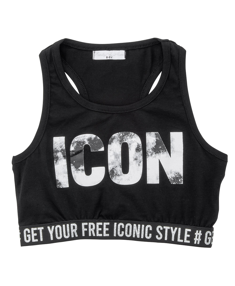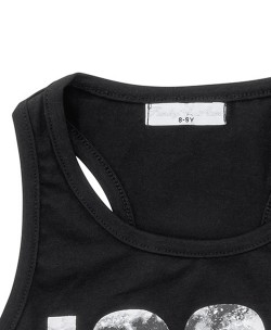 Μπλούζα αμάνικη σε μαύρο χρώμα με λάστιχο στο κάτω μέρος και γράμματα μπροστά.