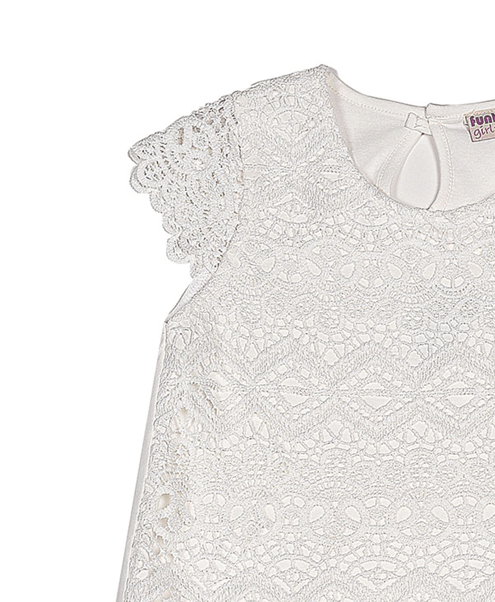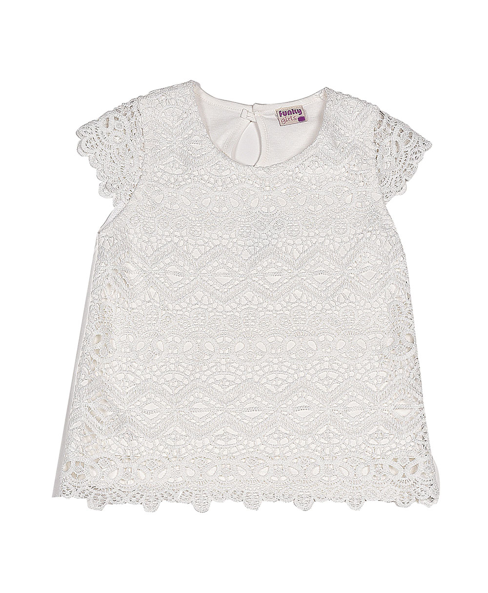 Μπλούζα λευκή κοντομάνικη με δαντέλα.