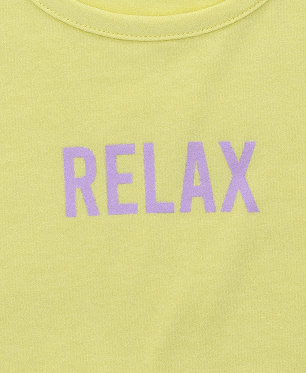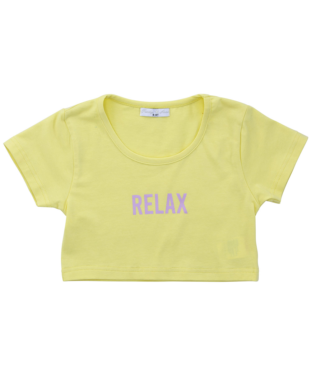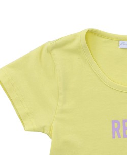 Μπλούζα κίτρινη κοντομάνικη με γράμματα μπροστά.