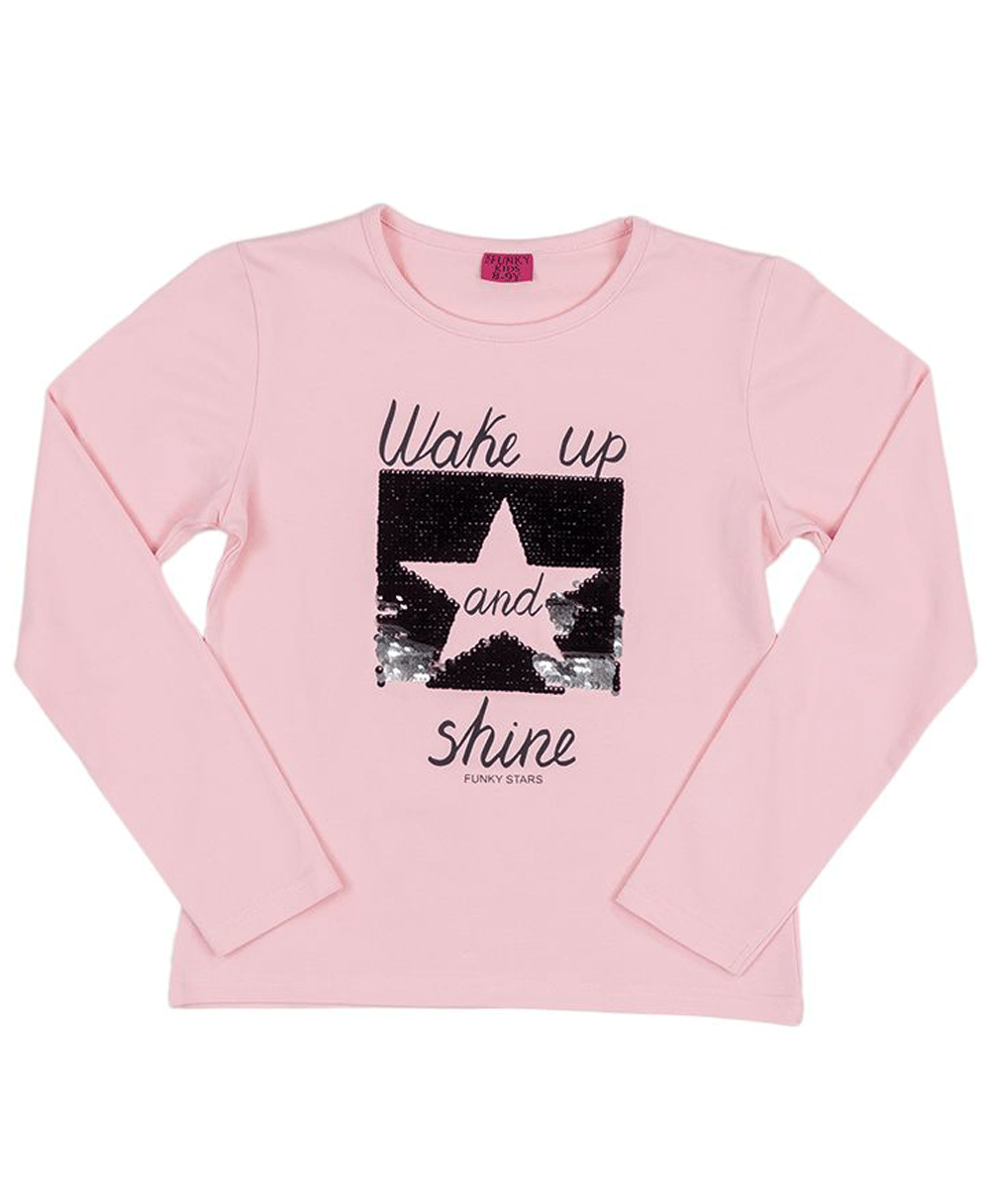 Μπλούζα για όμορφες δεσποινίδες σε ροζ χρώμα με σχέδιο μπροστά. Ιδανική για φθινόπωρο, χειμώνα και άνοιξη.