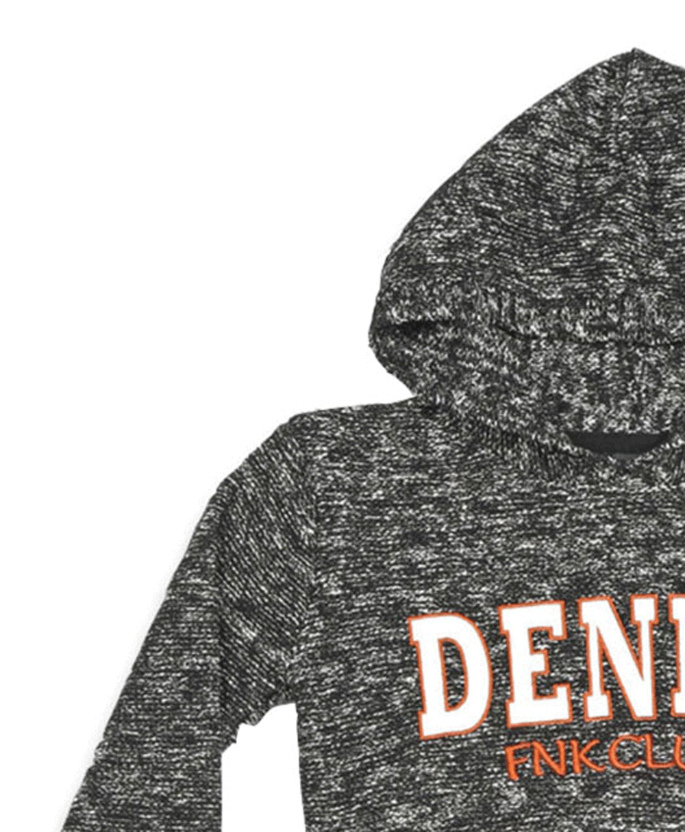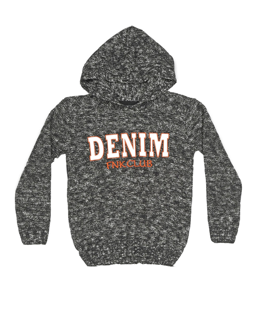 Μπλούζα πλεκτή για αγόρι σε ασπρόμαυρο χρώμα με κουκούλα και γράμματα μπροστά.