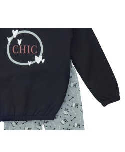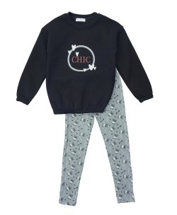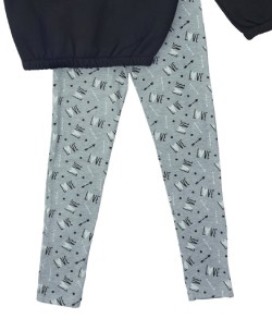 Μπλουζοφόρεμα με κολάν για κορίτσι. Αποτελείται από 2 κομμάτια: πάνω μέρος μπλουζοφόρεμα σε μαύρο χρώμα με γράμματα, κάτω γκρι κολάν με γράμματα.