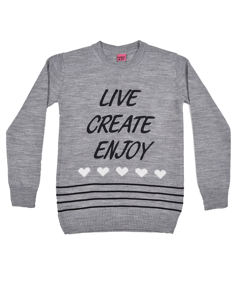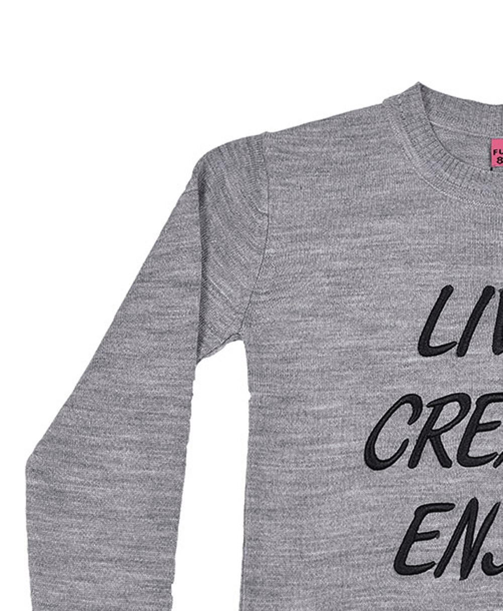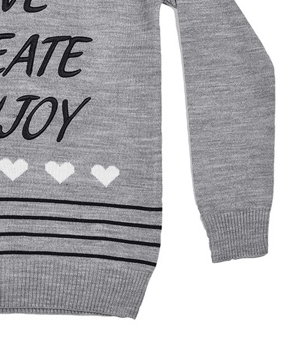 Μπλουζοφόρεμα πλεκτό για κορίτσι σε γκρι χρώμα με μαύρες ρίγες και γράμματα μπροστά.