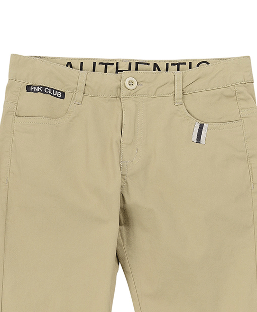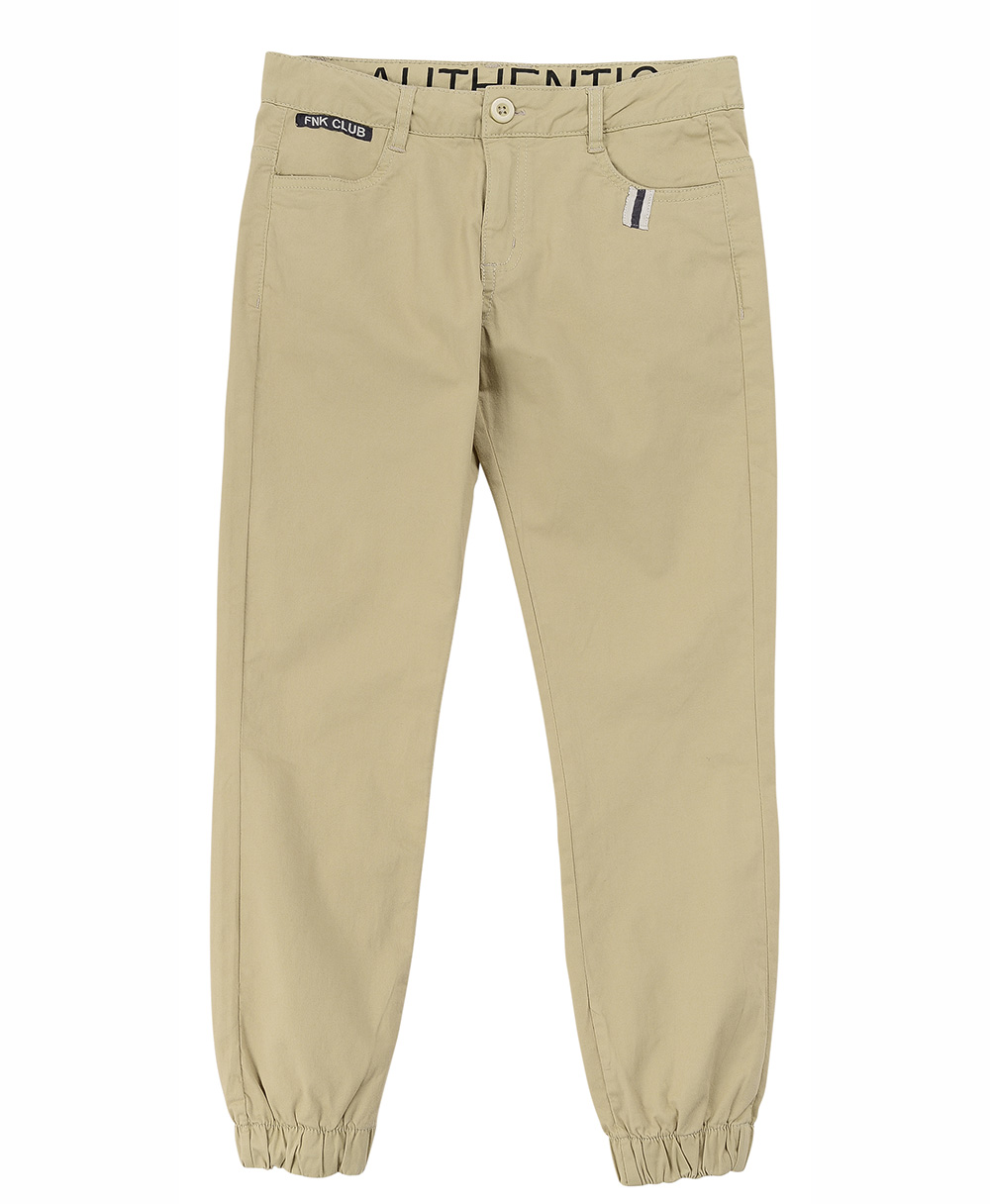 Παντελόνι υφασμάτινο σε μπεζ χρώμα με λάστιχο στο κάτω μέρος. Στην εσωτερική πλευρά της μέσης υπάρχει λάστιχο για αυξομείωση του μεγέθους.