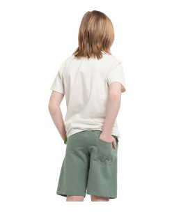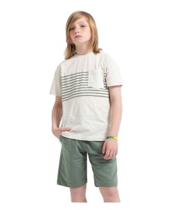 Σετ που αποτελείται από 2 κομμάτια: πάνω εκρού μπλούζα με ρίγες. Κάτω βερμούδα σε φυστικί χρώμα.