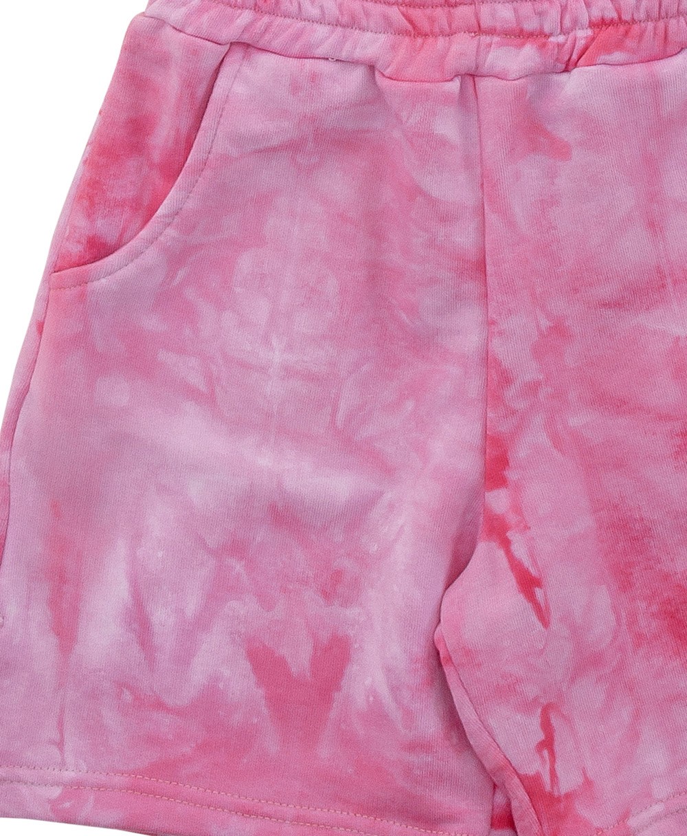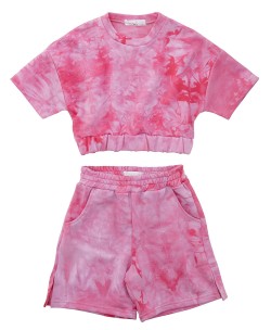 Σετ που αποτελείται από 2 κομμάτια: πάνω φούξια κοντομάνικη μπλούζα, κάτω φούξια σορτάκι.