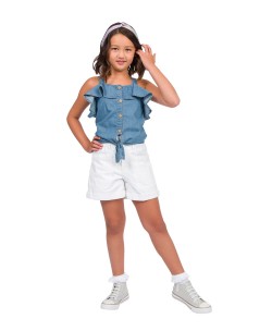 Σορτς για κορίτσι σε λευκό χρώμα με λάστιχο στη μέση.