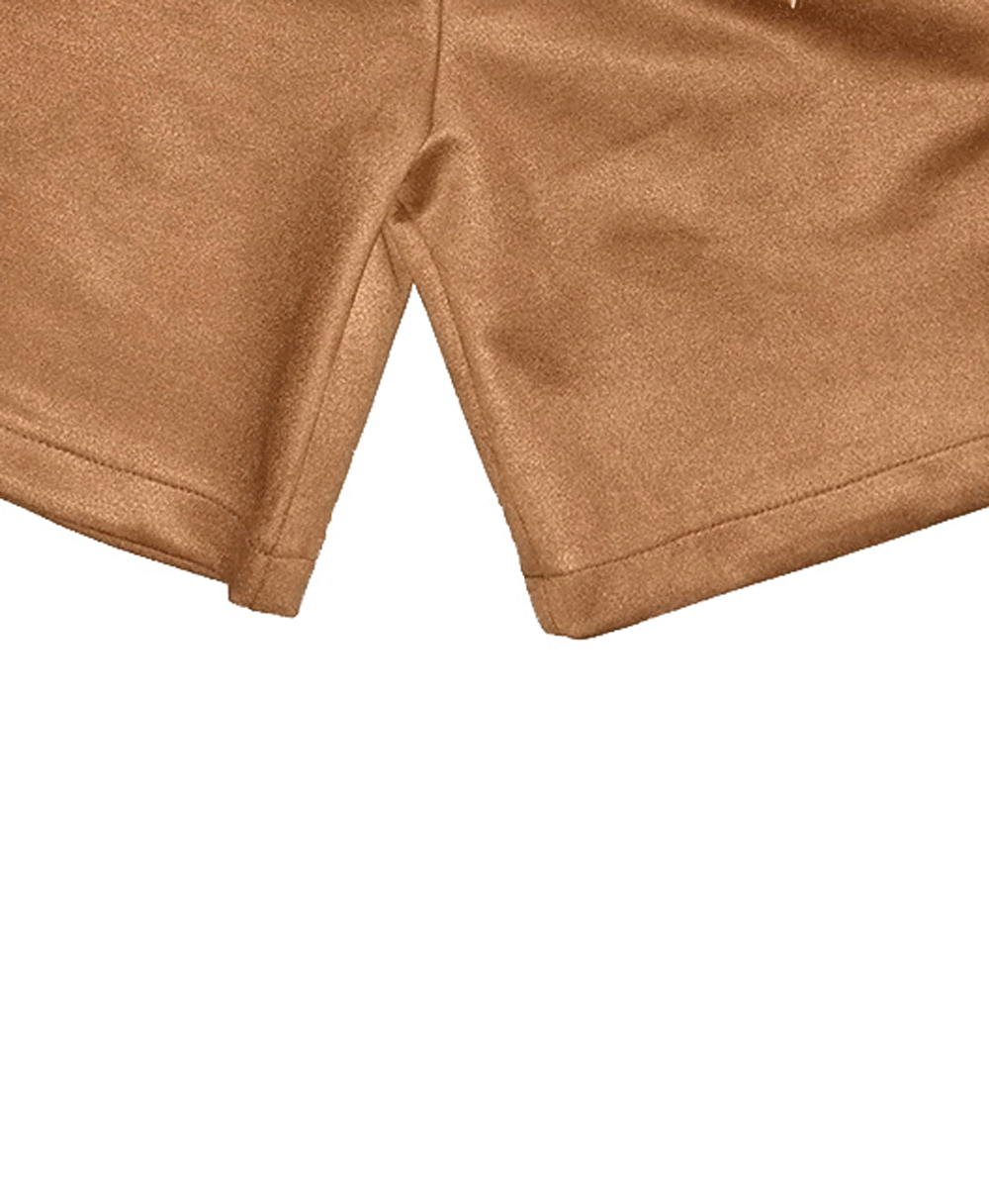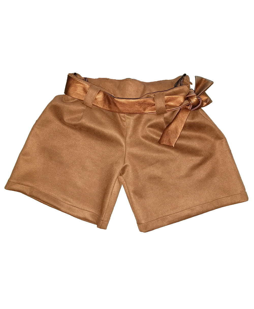 Σορτσάκι σε ταμπά χρώμα με ζωνάκι στη μέση. Στην εσωτερική πλευρά της μέσης υπάρχει λάστιχο για αυξομείωση του μεγέθους.